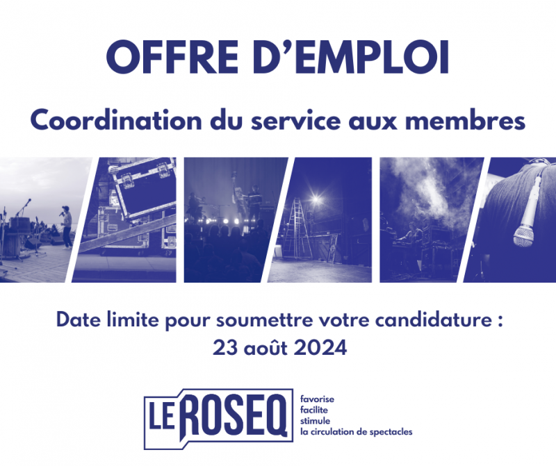 Le ROSEQ regroupe 32 diffuseurs pluridisciplinaires en arts de la scène dans les régions de l’est du Québec. Le réseau donne des services de programmation, de promotion, de représentation, de professionnalisation et de formation à ses membres. Il favorise, facilite et stimule la circulation de spectacles professionnels sur son territoire depuis près de 45 ans! Le ROSEQ est à la recherche d’une personne afin de pouvoir le poste de coordination du service aux membres.
